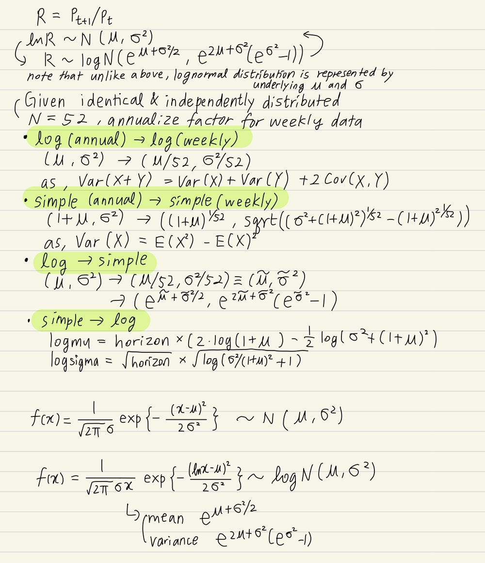 아주 자주... 로그리턴을 써야할지 심플리턴을 써야하는지 헷갈릴 때가 많다. 근데 많은 경우 별로 크게 유의미하지 않은게 숫자 자체를 원하는게 아니라 보통 상대적인 분석이 들어가기 때문이다.. 하지만 그럼에도 불구하고.. 기본적으로 틀린게 있어서는 안 된다. 금융수학 카테고리에는 통계/금융수학의 복습용 자료를 올릴것이다. 문제는 내가 LaTeX를 사용할 줄 모르고 앞으로도 배울 생각이 없고, 워드로 수식을 만들면 너무 오래걸리기 때문에 아이패드로 쓴다음 캡쳐해서 올릴 것이다. 그리고 혹시 내가 틀리게 정리한게 있다면, 댓글남겨주시면 감사하겠습니다.
